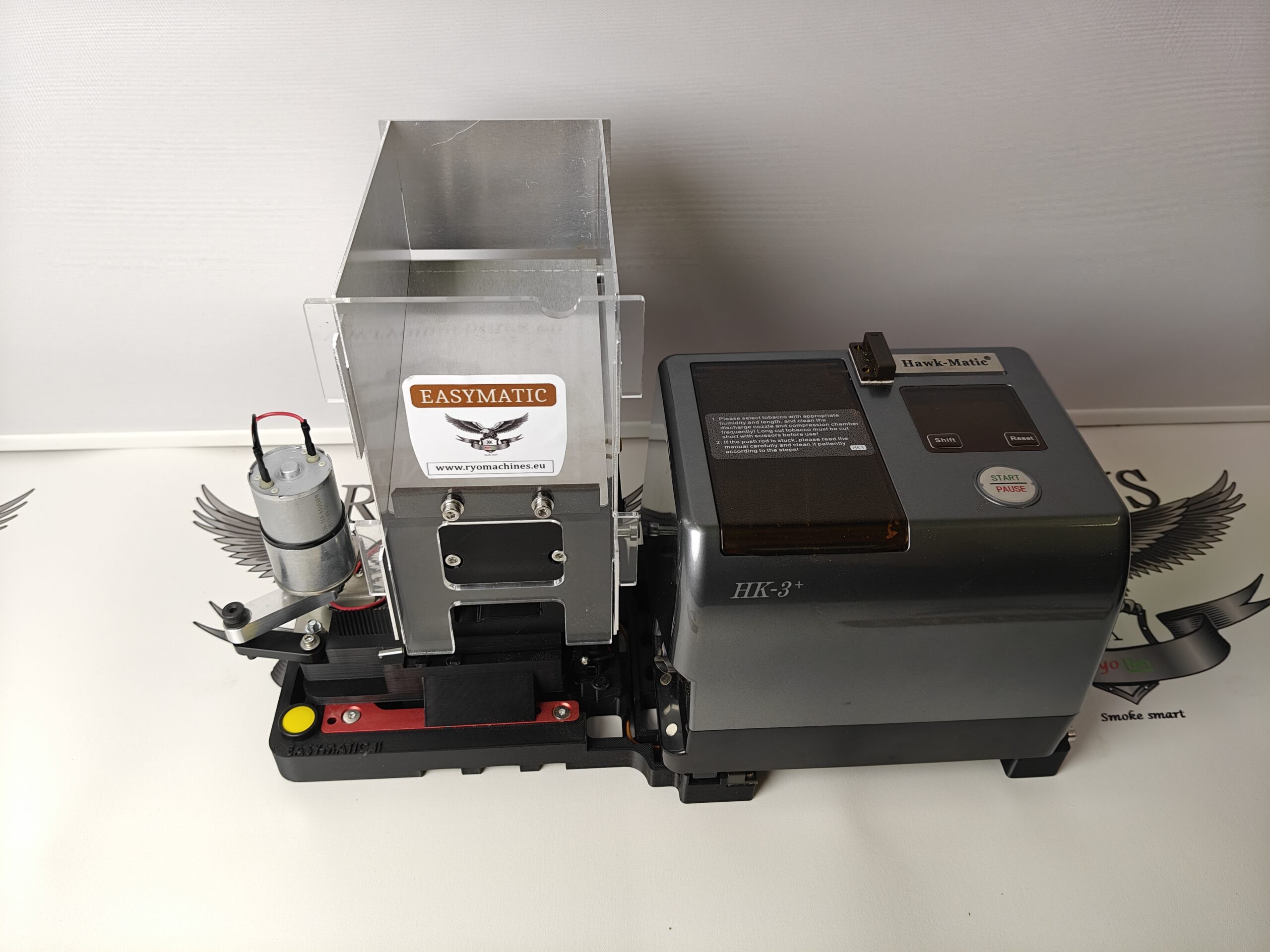 Easymatic 2.1, eine Erweiterung für die HK3+ Auto. Die Maschine automatisiert den Betrieb der HK3+ Auto vollständig. Im Video sehen Sie, wie es funktioniert. HINWEIS: Easymatic 2.1 ist nur mit HK3+ Auto-Maschinen kompatibel, die in unserem Shop erworben wurden. Die Maschine funktioniert nicht mit anderen Versionen der HK3+.